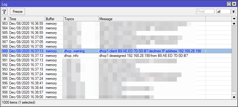 เบื้องต้น ให้ลองเปิดดูที่ Log ว่ามี Error “dhcp client xx:xx:xx:xx:xx:xx declines IP address yy.yy.yy.yy” หรือไม่ ถ้ามีก็เป็นไปตามรายละเอียดด้านล่างนี้